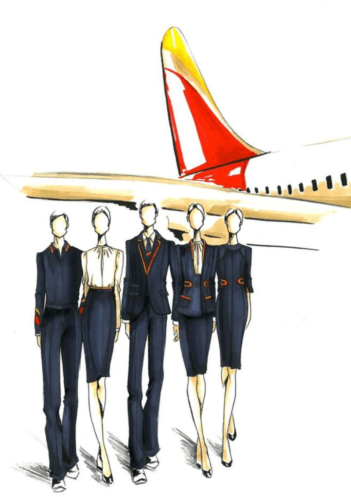 El uniforme más longevo de la compañía lo firma Alfredo Caral, pero en 2005 es el diseñador gallego Adolfo Domínguez el predecesor al ganar el concurso que convoca la aerolínea para el rediseño de los nuevos uniformes.