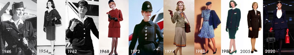 La aviación comercial ha cambiado y evolucionado a lo largo de los años, igual que los uniformes que visten los tripulantes de cabina. Antiguamente el papel de la azafata a bordo estaba bastante sexualizado y a nadie le extrañaba que el atuendo que lucían las auxiliares de vuelo fuesen vestidos (o faldas) muy cortos y ajustados que no dejaban mucho a la imaginación.