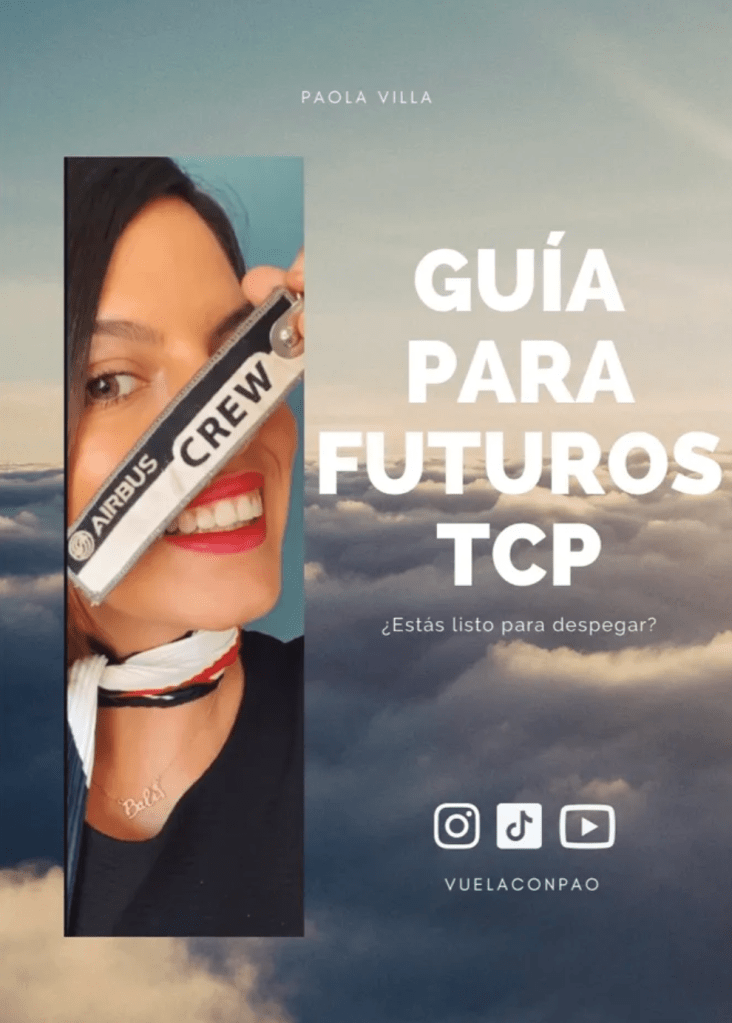 R – Sí, la guía para futuros TCP fue una idea que se me ocurrió con la intensión de poder ayudar a resolver dudas a todas esas personitas que quieren trabajar en la aviación y no saben por dónde empezar. En la guía hablo de varios temas: las asignaturas que se estudian en el curso de tripulante, ventajas y desventajas del trabajo, el sueldo etc. La puse a la venta hace unos meses y estoy muy contenta con el feedback que he recibido de las personas que la han comprado.