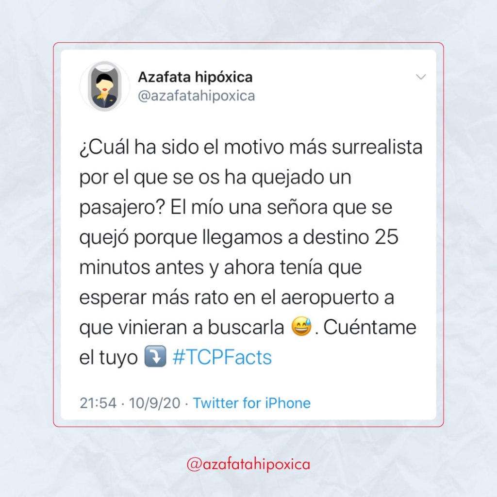 Hace unas semanas les preguntaba por Twitter a mis seguidores que cuál era el motivo más surrealista por el que un pasajero se les había quejado, les contaba el mío y les invitaba a que compartiesen sus experiencias.